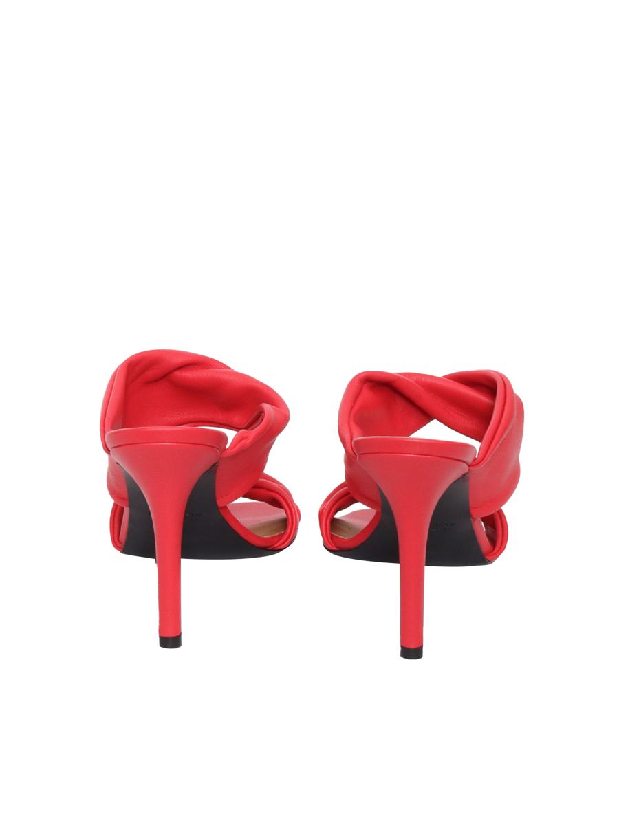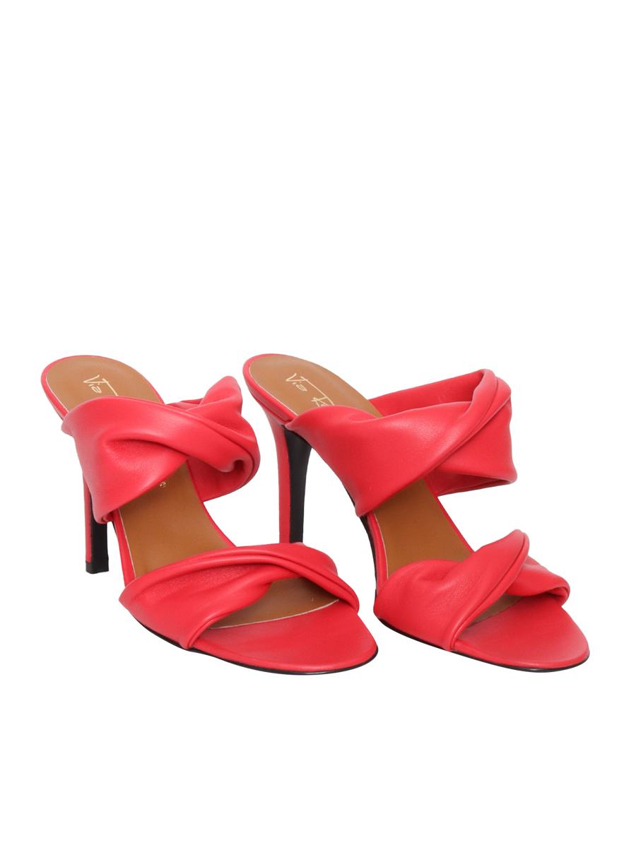 Red tubolar sandals Via roma 15 red tubular sandal in leather with stiletto heel, overlapping bands on the upper.