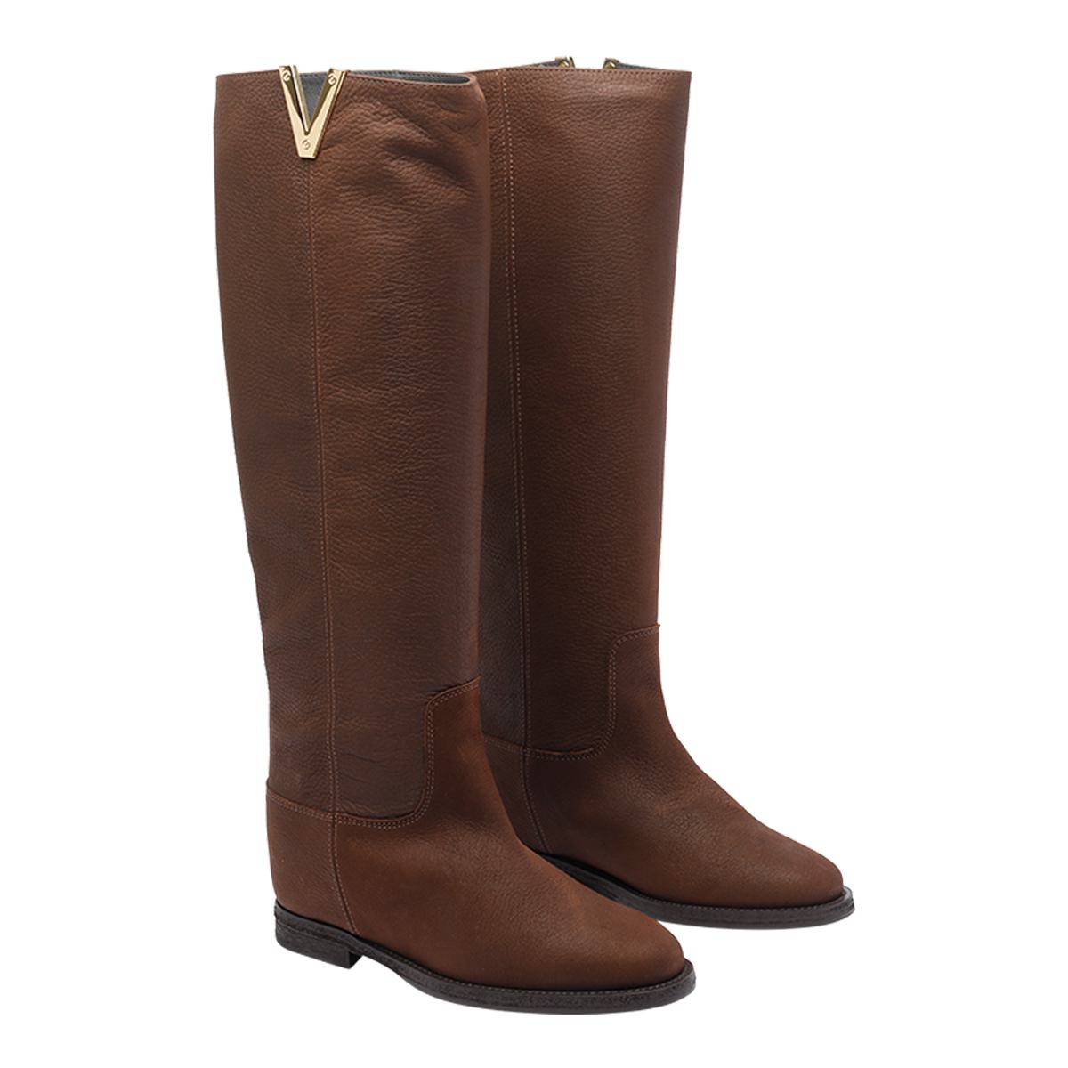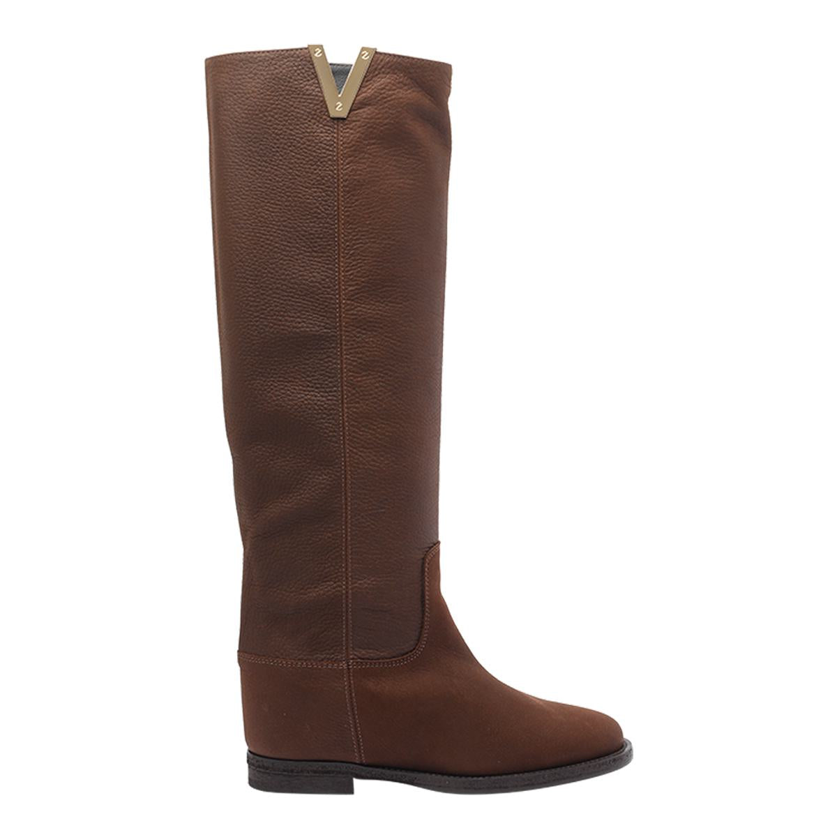Via Roma 15 Brown V Boots, Round Toe, Lateral V Logo, Leather Model, EU SIZE (IT)