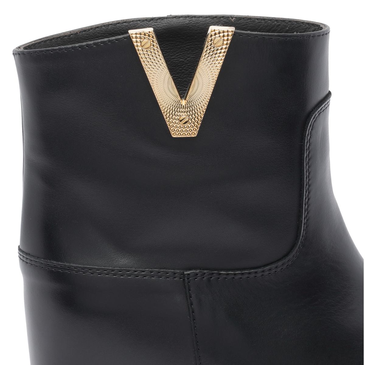 Via Roma 15 Black V Booties, Round Toe, Leather Model, Lateral Logo, Inner Heel, Heel 2 cm