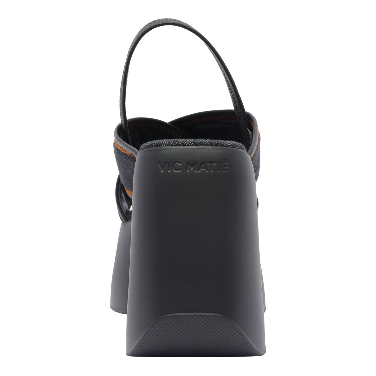 Vic Matiè Denim Plateau Sandals, Open Toe, Frontal Cross, Slip On, Fabric Upper, Rubber Maxi Sole, Platform 11 cm