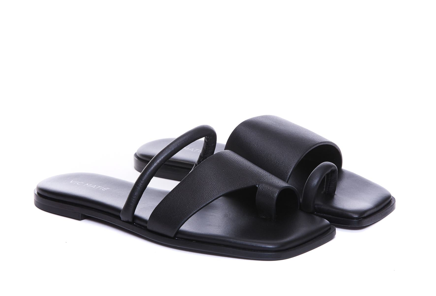 Vic Matie' Black Flat Sandals, Square Toe, Leather Upper, EU SIZE (IT)