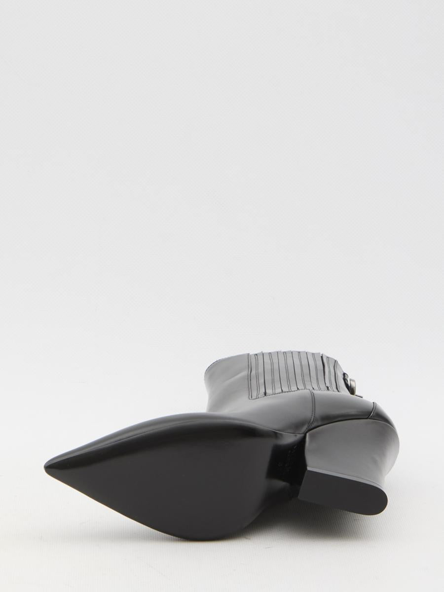 VLogo Lockette booties in black calfskin with VLogo Lockette detail in metal at the back. They feature pointed design, side elasticated inserts, rear loop tab, square heel and leather sole. Dust bag included. Any leather imperfections are not to be considered manufacturing defects, but a peculiarity of the material.