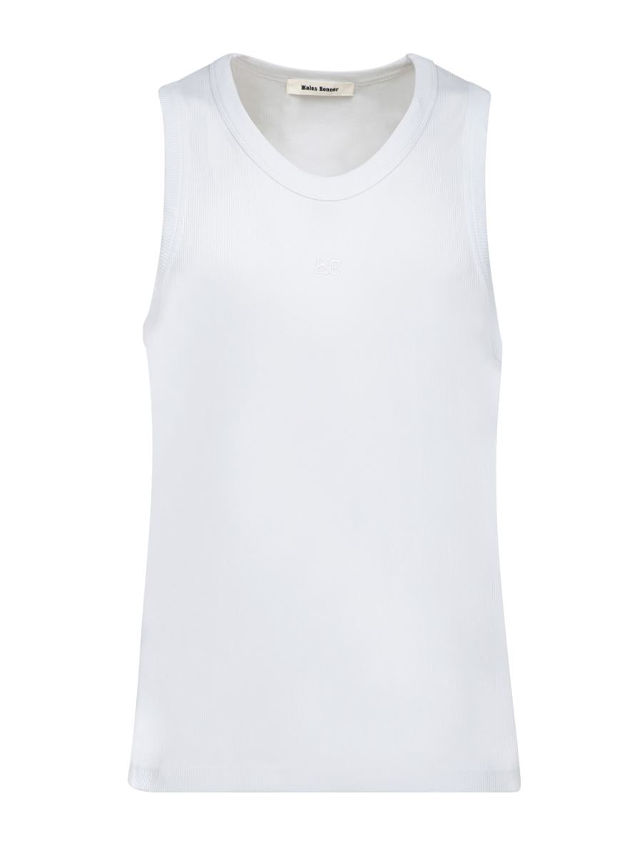 This Wales Bonner tank top features a minimalist design with fine ribbing along with a subtly embroidered logo, perfect for a clean yet sophisticated look.