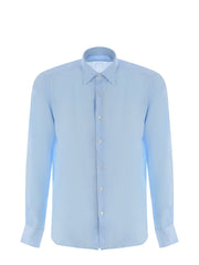 Shirt Xacus made of Light Blue linen. Collar. Long sleeves. Cuffs with buttons. Button closure on the front. Tailor fit.