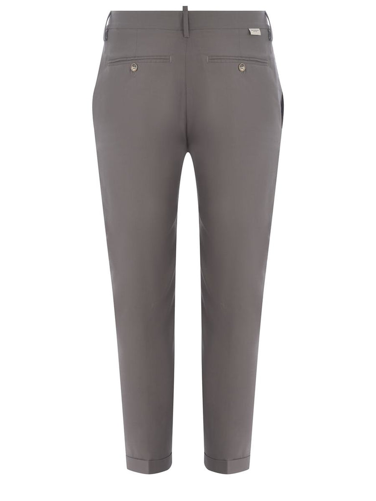 Trousers Yes London made of cool Gray wool. Belt loops. Elastic waist. Button closure. American pockets. Logo patch applied on the back. Welt pockets with button on the back.