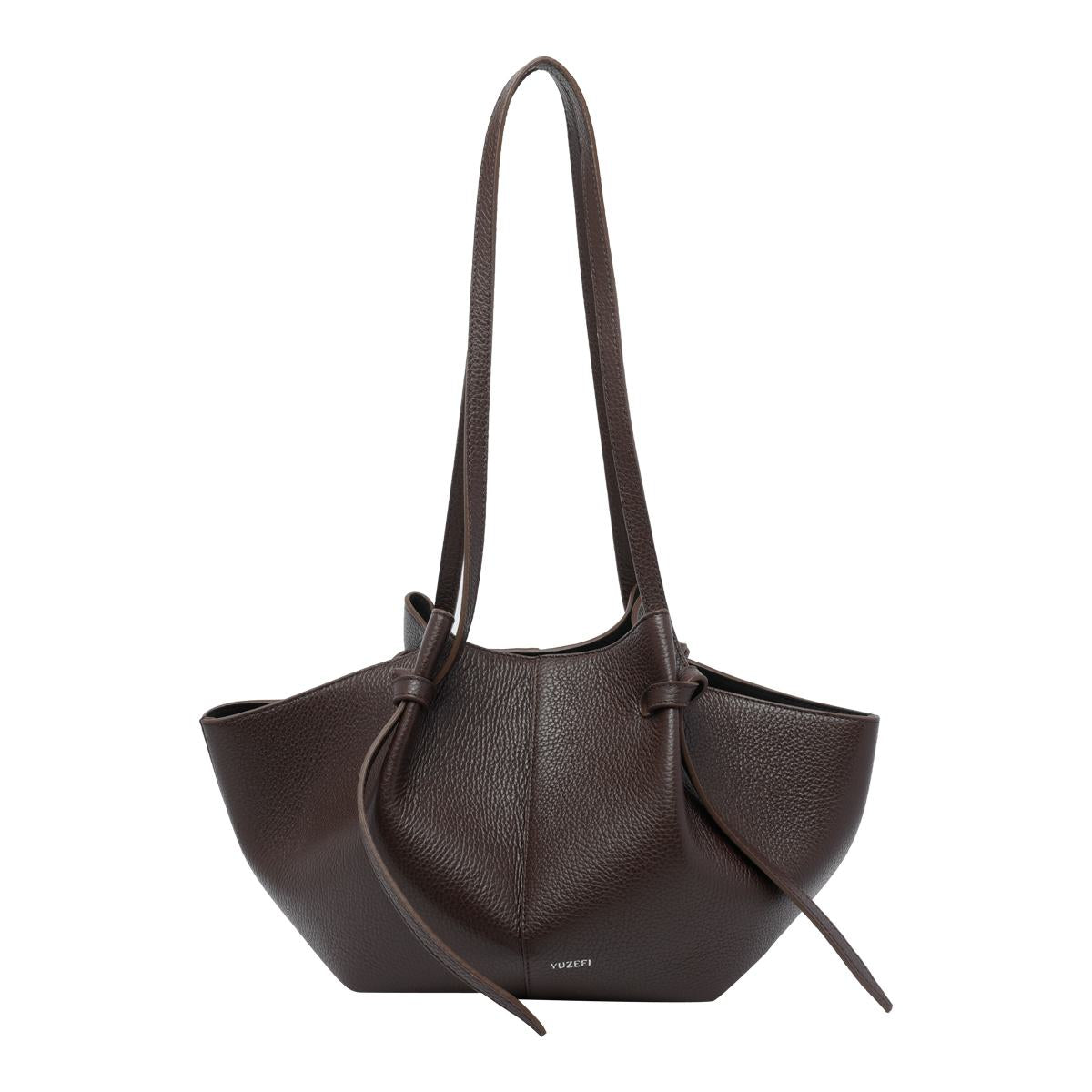 Yuzefi White Mochi Shoulder Bag, Magnetic Closure, 2 Shoulder Straps, Leather Upper, 21x38x19 cm