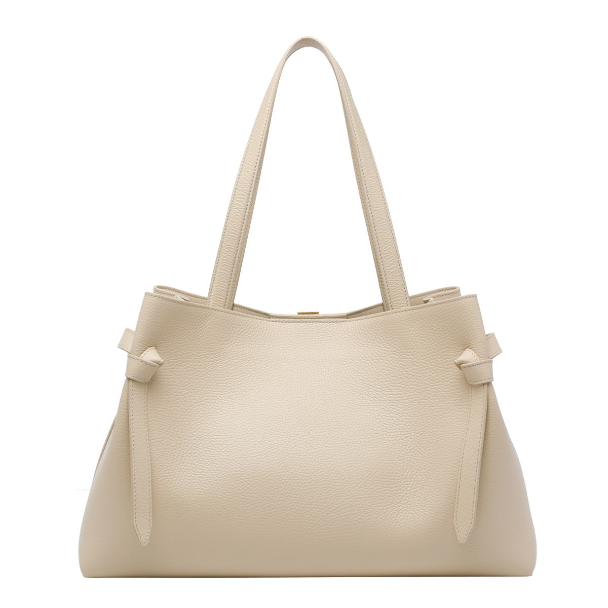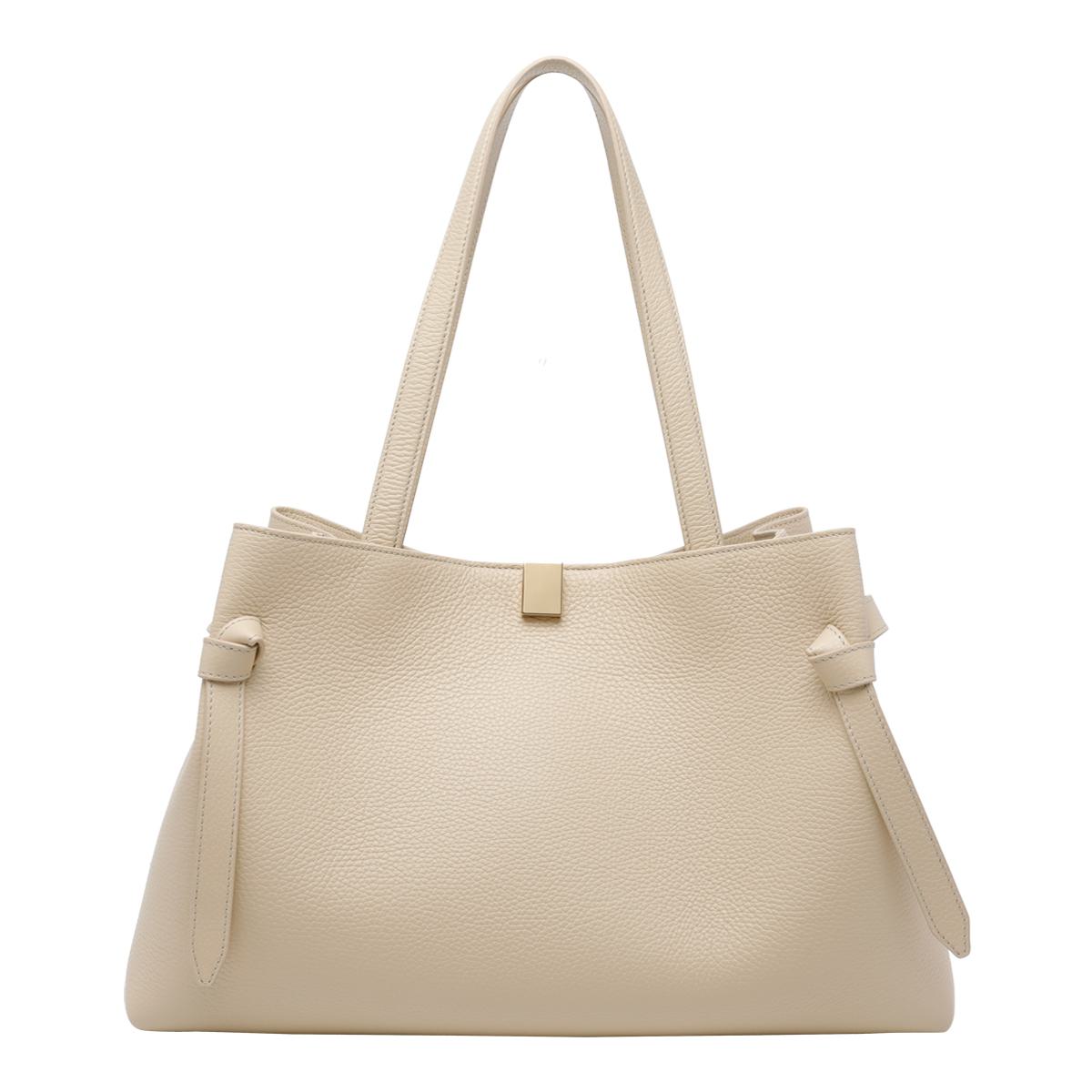 Yuzefi Beige Gyoza Tote Bag, Magnetic Closure, Inner Open Pocket, 2 Shoulder Straps, Leather Model, 27x43x19 cm