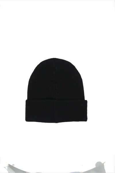 Alexander McQueen's beanie crafted in black cashmere with red McQueen embroidery on front.