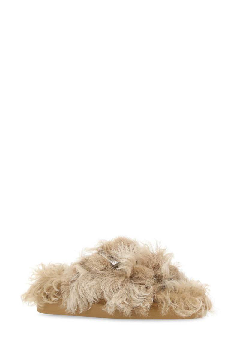 Beige eco fur slippers