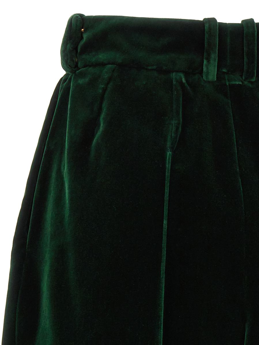 Boyfriend' velvet pants with loose leg and front pleats, hook-and-eye and button zip closure, pockets