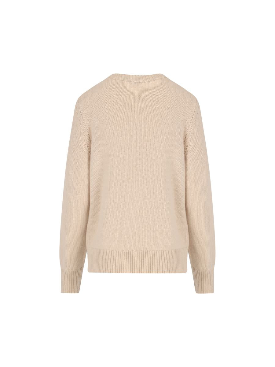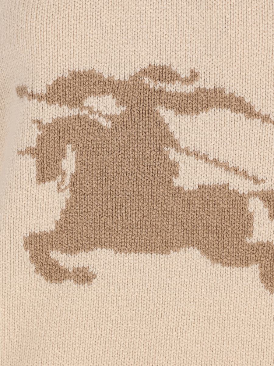 Burberry wool and cashmere pullover with a jacquard pattern depicting the Equestrian Knight Design (EKD). The model features a regular fit with slightly dropped shoulders, round neckline and ribbed trim. A soft and comfortable garment featuring an iconic detail that recalls the brand's heritage with a modern twist. - Material: 71% wool, 29% cashmere - Color: beige - Finish: 70% wool, 28% cashmere, 1% elastane, 1% polyamide - Logo and Equestrian Knight Design on front - Made in Italy - Item code: 8114157A4186
