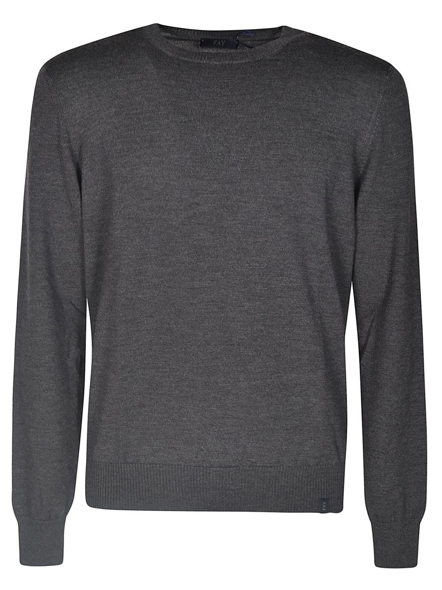 fine-knit crew-neck jumper from FAY featuring light grey, virgin wool, fine knit, crew neck, long sleeves, ribbed cuffs and hem and straight hem.