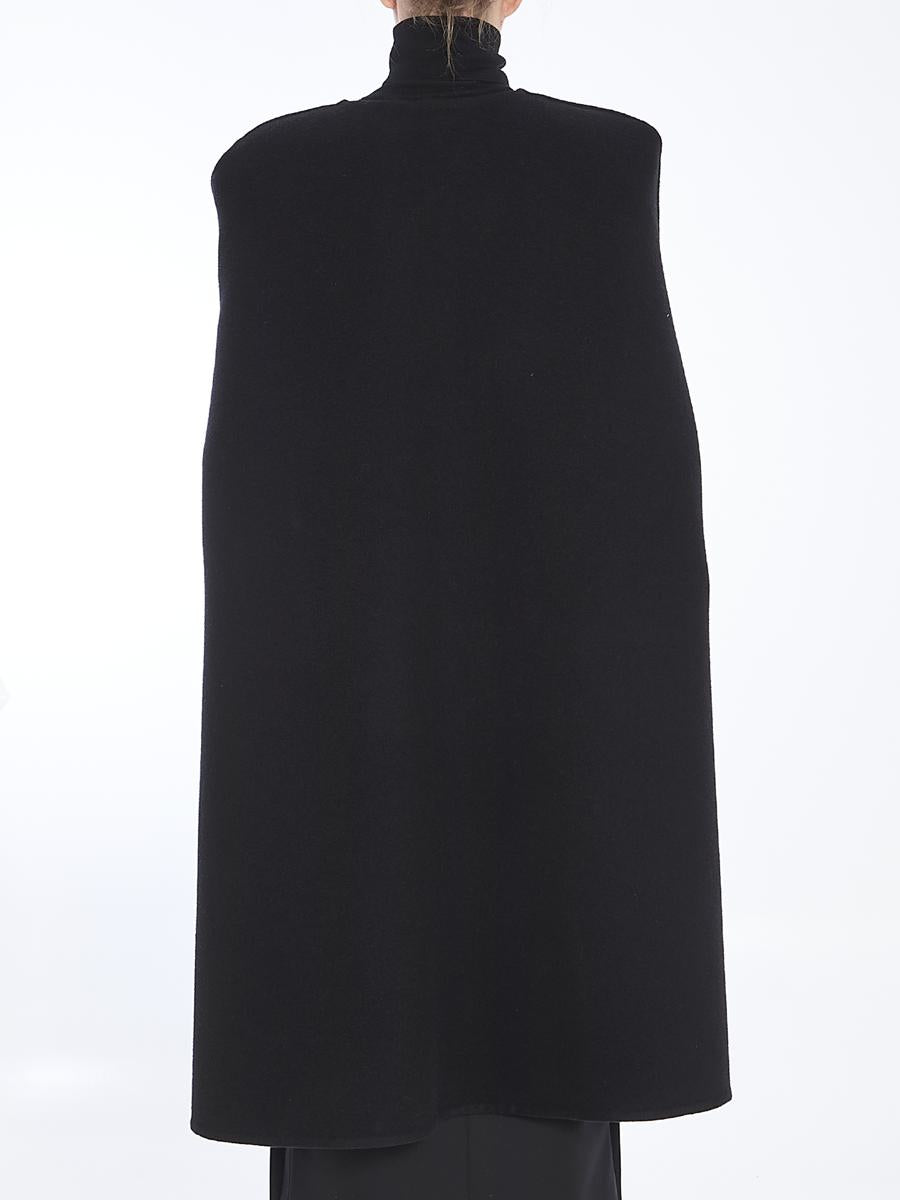 Black Fluffy Cashmere Blend cape. It features structured shoulders and front hook fastening. Regular fit.