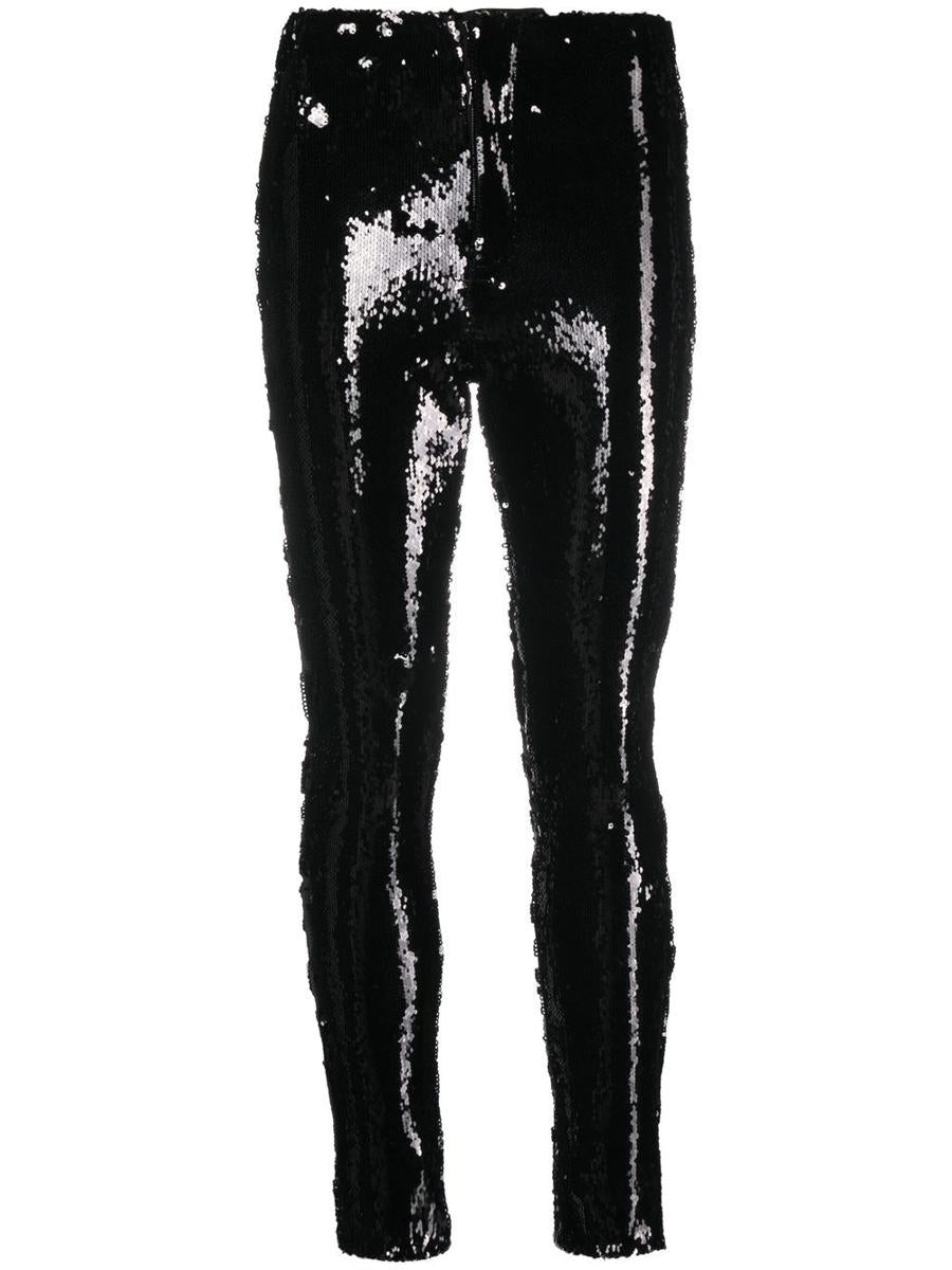 ISABEL MARANT的亮片装饰长裤。黑色、棉质、亮片装饰、拉链门襟、修身剪裁。