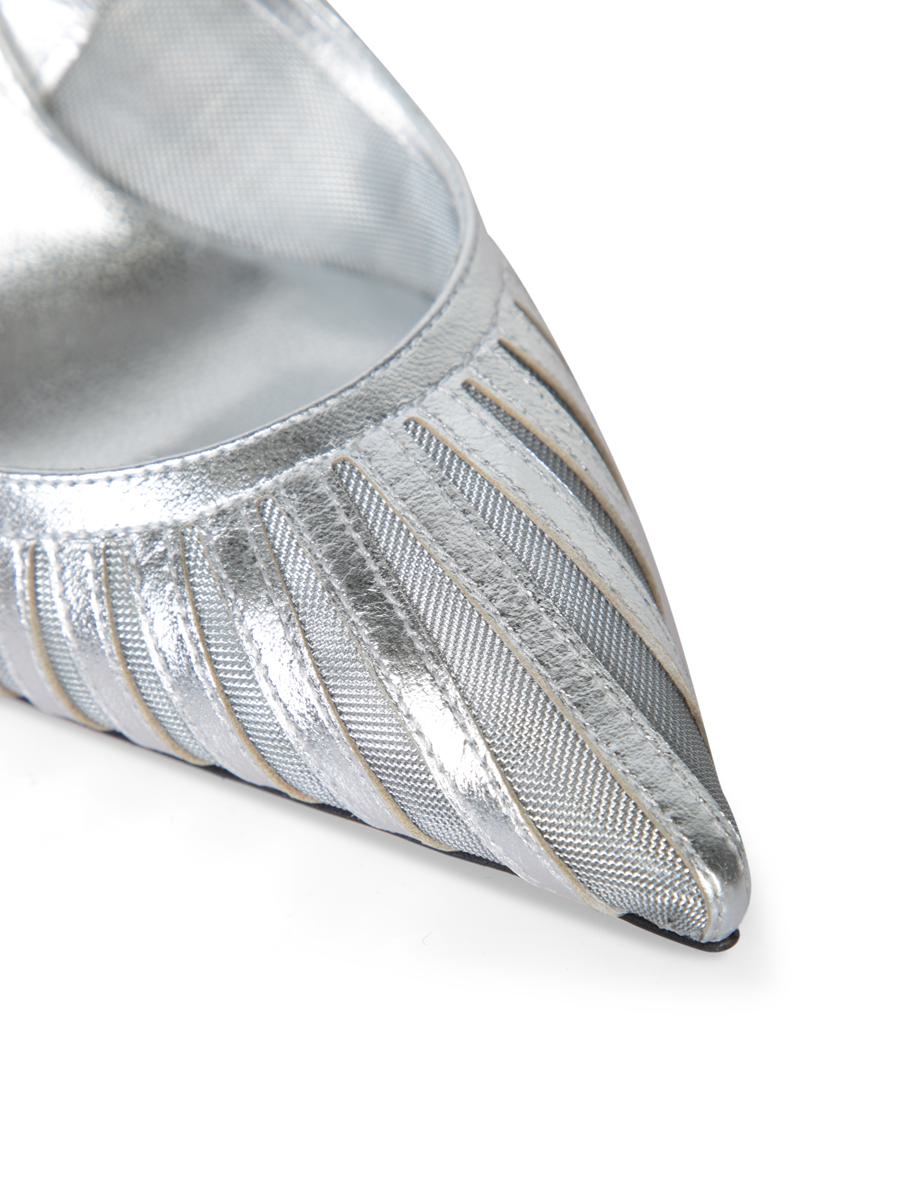 High and slim-heeled mules. Features a silver mesh structure with sparkling finishes and a jewel detail on the band.. These elegant Jimmy Choo Bing 100 mules are the epitome of luxury and sophistication. Their silver metallic mesh structure, adorned with jewel details, makes them perfect for special occasions