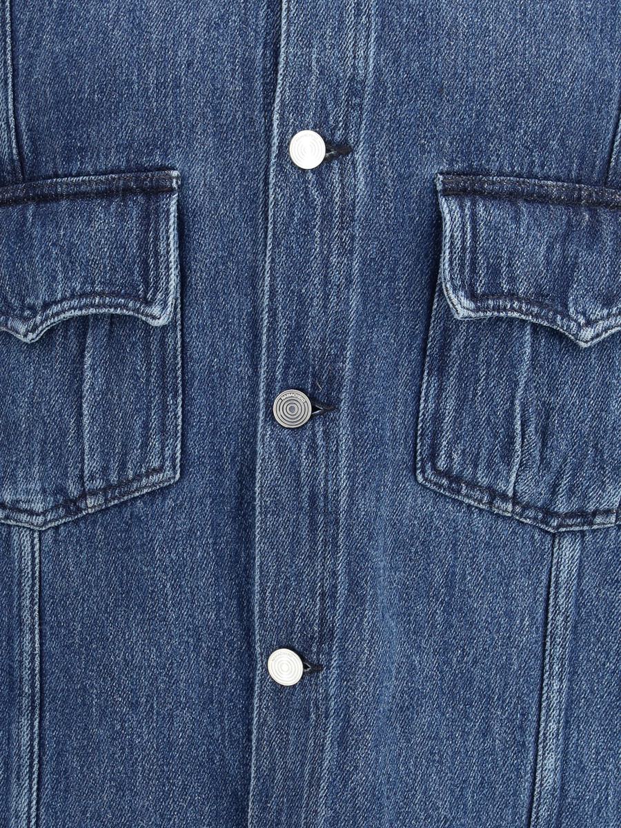NAMACHEKO'S HAN SHIRT REVISITS CLASSIC DENIM WITH A "PLEATED" WORKMANSHIP THAT GIVES THE FABRIC A WAVY, THREE-DIMENSIONAL EFFECT. THE DESIGN RETAINS TAILORED DETAILS SUCH AS THE CLASSIC COLLAR, FRONT BUTTON CLOSURE AND CHEST PATCH POCKETS, WHILE THE ROUNDED HEM AND EMBROIDERED LOGO ON THE BACK ADD A DISTINCTIVE TOUCH. A GARMENT THAT COMBINES THE SOLIDITY OF WORKWEAR WITH A REFINED, EXPERIMENTAL AESTHETIC.