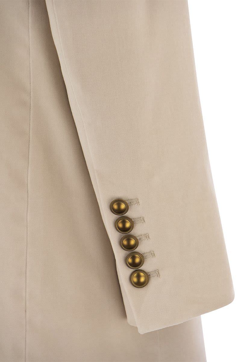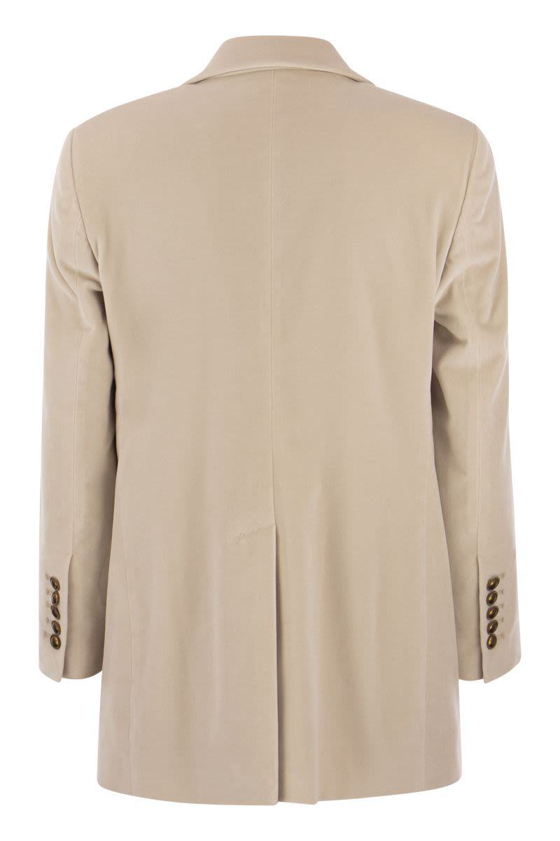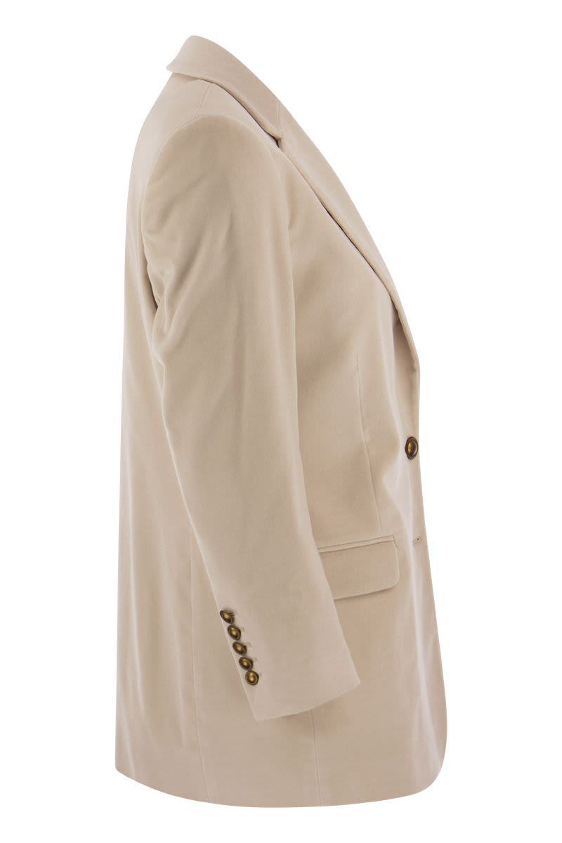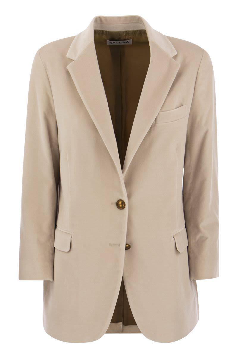 Saulina is a historic Italian brand, synonymous with quality and creativity. Velvet single-breasted jacket characterised by a loose fit. - Single-breasted jacket with 2 buttons - Soft line - Multipockets - Semi-lined interior DESIGNER ID: SAA016 1