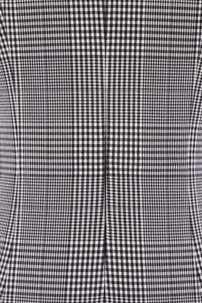 Self Portrait sleeveless mini dress crafted from viscose-blend Prince of Wales check fabric. Featuring a contrasting high collar, concealed back zip closure, front patch pockets with buttons, straight hem, and full lining.