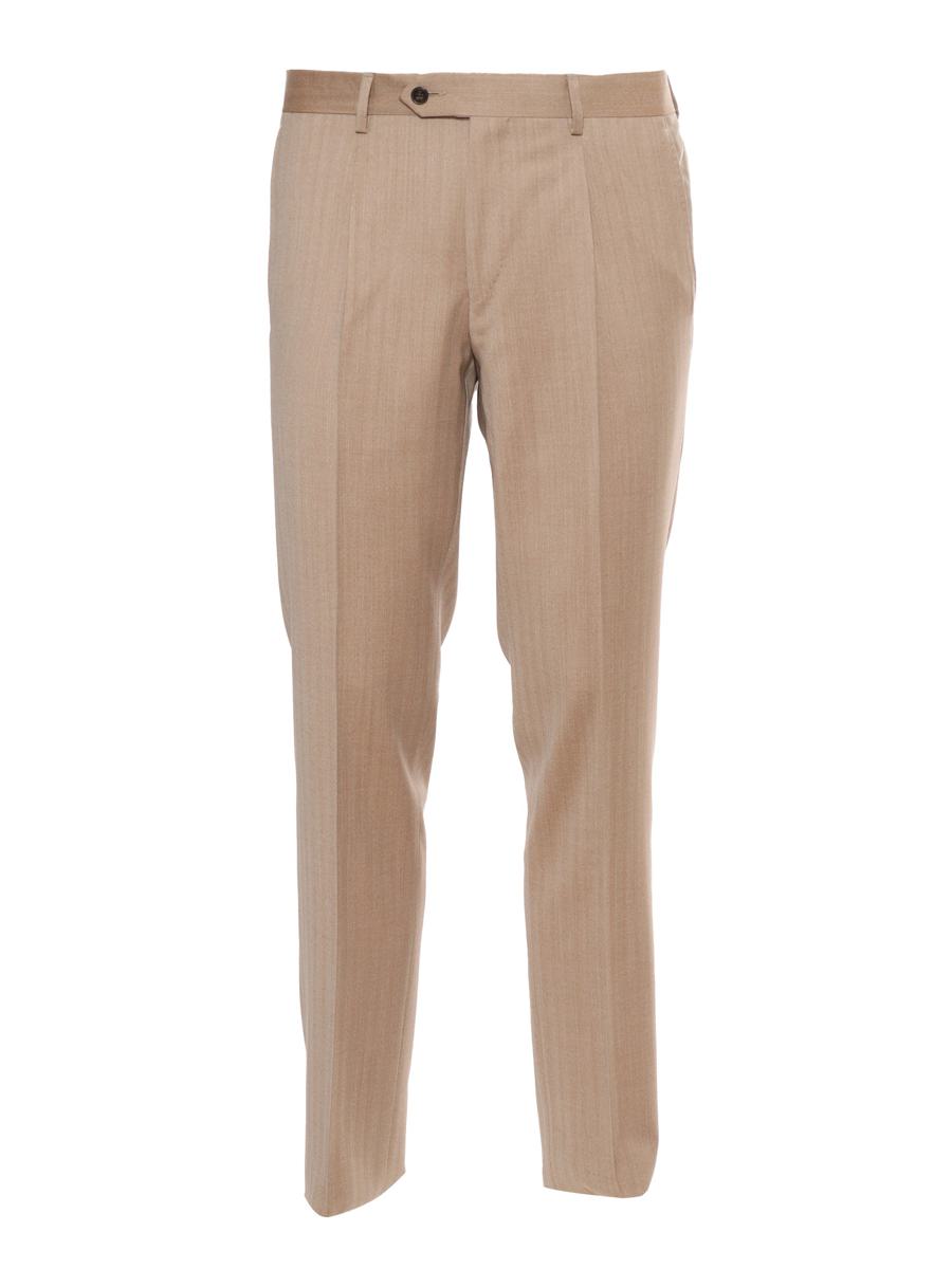 Brown men's suit Brown men's suit in fresh wool with welt pockets, single front buttons, lapel collar, fitted trousers.